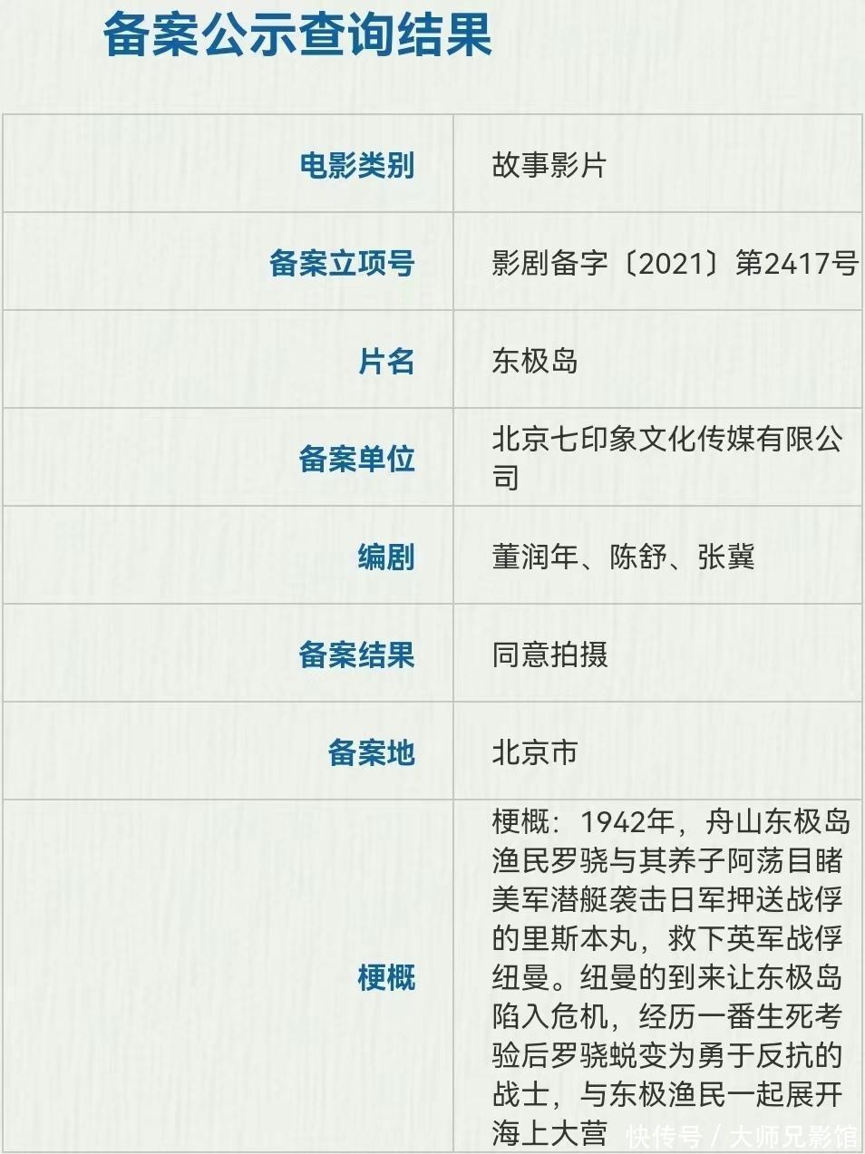 二、管虎顽抗,新片《东极岛》立项开拍。